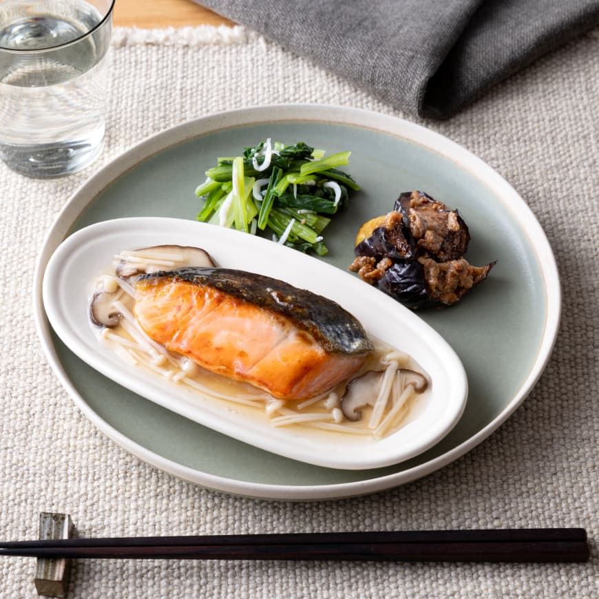 食べ応えのある鮭に、きのこの旨みたっぷりの和風餡をかけた上品な一皿。
