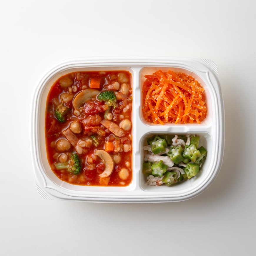 野菜の甘みとトマトの酸味。ミートボールが食べ応え抜群の具だくさんの洋風スープ。