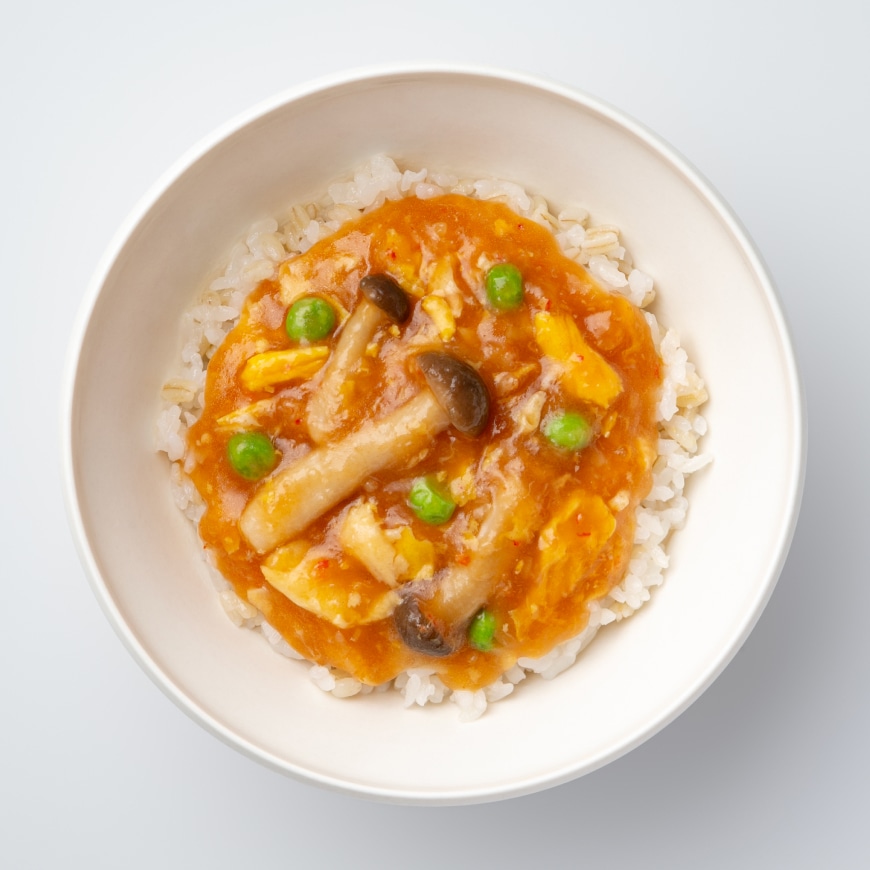 卵加工品(液卵、植物油脂、かつお節だし、しょうゆ、こんぶだし、砂糖、みりん、食塩)(国内製造)、紅ズワイガニフレーク(紅ズワイガニ、食塩)、トマトケチャップ(トマト、砂糖、ぶどう糖果糖液糖、醸造酢、食塩、たまねぎ、香辛料)、上白糖、しめじ、長ねぎ、米酢、食用なたね油、オイスターソース、しろしょうゆ、ガラスープ、しょうが、グリーンピース、食塩/加工でん粉、増粘剤(キサンタンガム)、調味料(アミノ酸)、カラメル色素