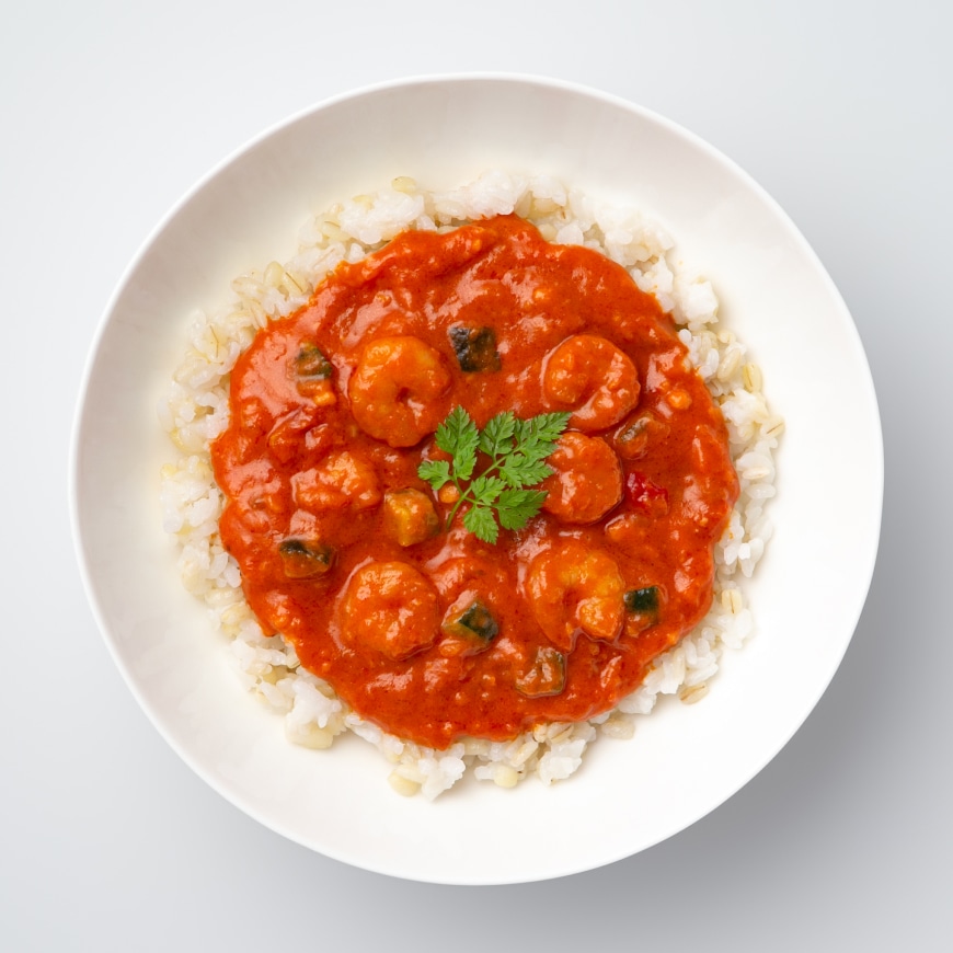 トマトケチャップ(トマト、砂糖・ぶどう糖果糖液糖、醸造酢、食塩、たまねぎ、香辛料)(国内製造)、トマトピューレ、えび(えび、食塩)、グリル野菜(ズッキーニ、黄ピーマン、赤ピーマン、たまねぎ、にんじん)、クラッシュトマト、牛乳、ブレンドオイル(食用ひまわり油、食用オリーブ油)、オニオンソテー、コチュジャン、ニンニク、生クリーム、ベシャメルソース、オリーブオイル、食塩、粉チーズ/クエン酸、調味料(アミノ酸等)、安定剤(増粘多糖類)、香料、カロテン色素、卵白リゾチーム